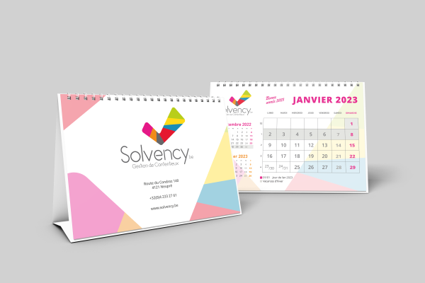 Chez Visual Impact nous imprimons vos calendriers dans tous les styles et formats. Nous les personnalisons avec votre logo, des photos, des citations.
